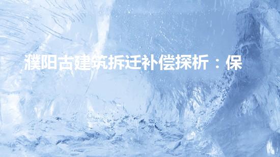 濮阳是我国历史文化名城,拥有丰富的精神文化遗产,包括最著名的郑国渠。 拆迁补偿中,必须保证文物的保存,不能因为发展而牺牲它们。此外,还应该加强对文化遗产的科学研究,发掘价值,传承文化,以保护文化遗产,推动历史文化发展。