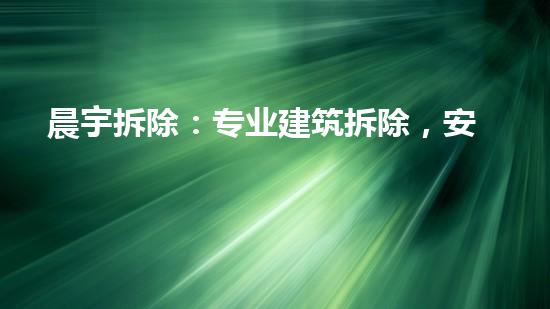 总的来说,晨宇拆除是一家专业的建筑拆除公司,他们采用精准拆除技术和先进的设备和工具,注重员工的专业技能和安全保障措施,可以为客户提供高质量、高效、安全的拆除服务。虽然面临的拆除任务可能各不相同,但是晨宇拆除始终致力于给客户提供最佳的拆除服务。