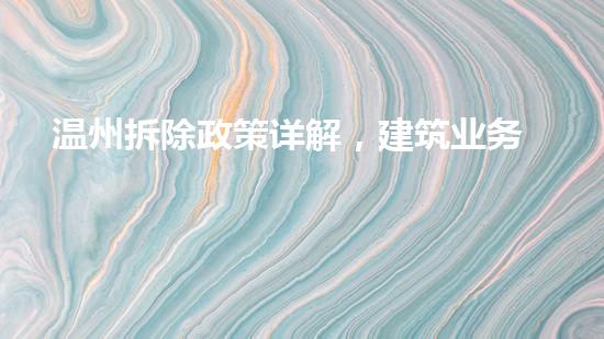温州市在拆迁政策方面对于建筑行业从业者来说是一个需要了解和掌握的关键问题。本文以拆除行业专家的角度介绍了温州的拆除政策。文章对于温州拆除政策的详细阐述,对建筑行业从业者有重要的指导和参考意义。