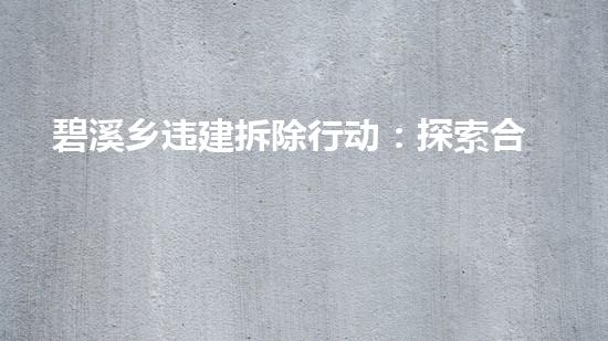 近年来,我国针对违建的拆除工作取得了不少成绩,其中以碧溪乡违建拆除行动为典型。本文旨在探讨这一行动的合规处置路径,分析其可供借鉴的经验和值得改进的方面。文章从拆除前的准备工作、拆除方案的设计与实施、拆除过程中的安全与环保、拆除后的后续处理和管理、技术创新和未来发展方向等几个方面进行深入阐述,力求为读者呈现深入、丰富、准确的专业视角。