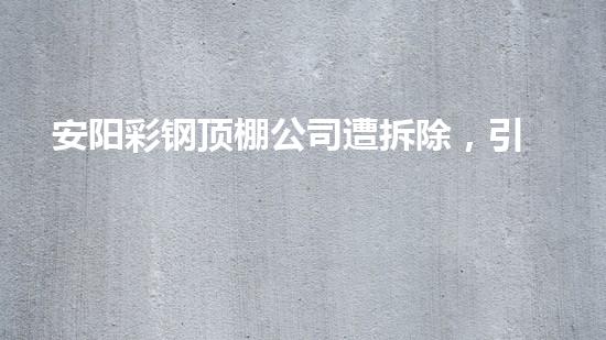 最近,中国河南省安阳市彩钢顶棚公司遭受拆除,引发了广泛的争议和思考。这篇文章将揭示这个事件的背景,同时从拆除行业专家的角度出发,讨论安阳彩钢顶棚公司拆除引起争议和思考的原因,并探讨一些解决方案。通过本文的阅读,读者将更深入地了解该事件以及处理、拆除工作的相关问题。