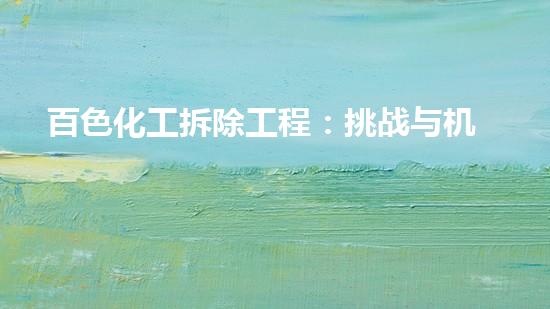 本文主要介绍了百色化工拆除工程:挑战与机遇。从各种角度深入分析了该工程面对的挑战,以及应对这些挑战的机遇,包括工程初始清洗置换、设备回收、污泥减量化、废液处理、油罐拆除、危废处理、环保施工等方面。本文还介绍了巴洛仕集团的不动火水刀切割拆除技术的应用,探讨了该技术对百色化工拆除工程的重要意义。