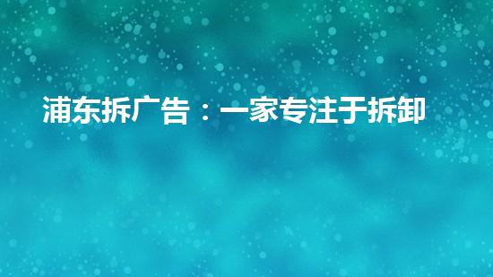 浦东拆广告是一家专注于拆除高空广告牌的公司,他们在提供市场需求服务的同时,也为城市环境保洁和交通安全作出了贡献。本文将从专业人员的角度出发,对该公司的优势、技术、项目、市场等方面进行详细阐述。