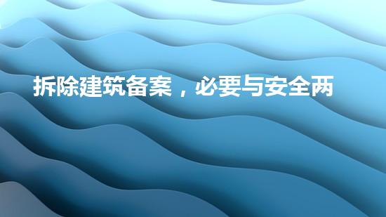对于拆除建筑工作来说,备案是必要的。备案过程需要充分考虑工作中的安全问题,以及确保我们在拆除过程中不会对周围环境和社区造成负面影响。本文是化工技术领域专家从专业视角对拆除建筑备案这一流程进行深入探讨。