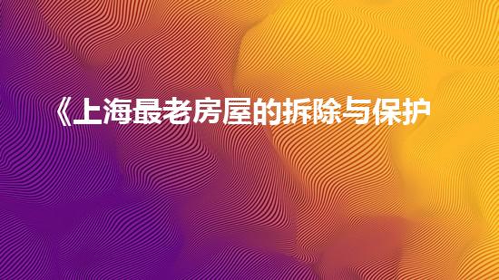 本文将详细介绍上海最老房屋的拆除与保护计划。在介绍这个话题之前,我们将先提供一些背景信息,引起读者的兴趣。随着时代的变迁,越来越多的老房子需要拆除或恢复。而这些房屋往往具有历史、文化、建筑、艺术价值,因此,对于这些房屋的拆除和恢复,需要特别注意。