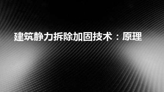 建筑静力拆除加固技术是一项重要的技术,它在建筑拆除与加固领域具有广泛应用。本文将从建筑静力拆除加固技术的原理、实践与挑战三个方面进行深入阐述,同时分享一些案例和应用实践。
