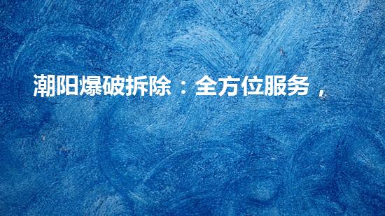 总之,潮阳爆破拆除服务是目前国内最为实力的拆除服务之一。其全方位服务、专业安全的技术支持、高效快捷的执行力和优质的环保施工成为众多客户的首选。随着城市化进程的加快和人们对拆除服务的要求越来越高,相信潮阳爆破拆除服务仍会在未来持续发展。