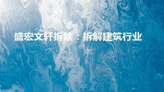 本文将重点介绍盛宏文轩拆除在拆解建筑行业的未来方面的相关观点和建议。随着现代社会的不断发展,建筑行业也在不断发展,建筑拆除成为了非常关注的话题。盛宏文轩拆除通过深入研究和实践,为我们提供了许多有益的意见和建议。