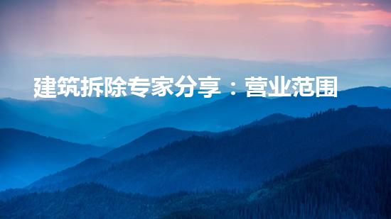 在建筑拆除领域,专家分享营业范围拆除实战攻略,为相关从业者提供实用的指导,本文将从几个方面深入分析,帮助读者更好地掌握拆除行业的实际应用。