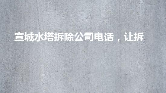宣城水塔拆除公司电话的重要性不容忽视。对于拆除行业专家来说,拥有一个可靠的联系方式能够让拆除工作更从容顺利。本文将从多个方面,深入探讨如何让宣城水塔拆除公司电话发挥最大作用。