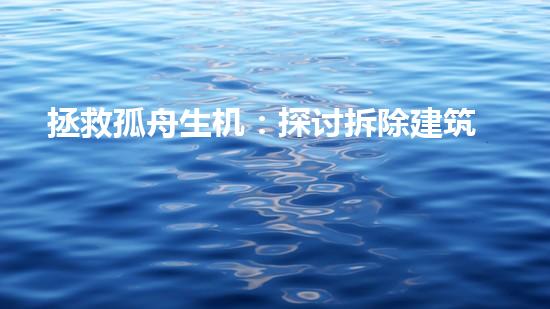 拯救孤舟生机意味着要采取切实有效的措施,最大限度地减少拆除建筑对环境的影响,同时确保人员和建筑物的安全。这不仅有助于保护人类健康和环境生态,而且有助于实现可持续发展目标。为此,需要采纳先进的技术和环保措施,同时加强对拆除行业的监管和管理。