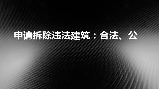 随着城市化进程的加速和人口增长的不断加速,违法建筑的问题越来越凸显出来。然而,拆除违法建筑并非仅仅是一个简单的问题。拆除过程需要合法、公正、有序,同时还需要对环境和公共安全产生最小影响。在本文中,我们将从化工技术专家的角度出发,深入探讨如何申请和实施违法建筑拆除的过程。