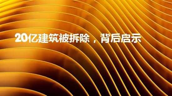 最近,一座价值20亿的建筑被拆除,这背后启示千载!这件事引起了人们的关注,一些人认为这是对资源的浪费,另一些人认为这是顺应市场调整的自然结果。本文作者作为一名拆除行业专家,从多方面对这座建筑被拆除的原因和意义进行了深入的探讨。