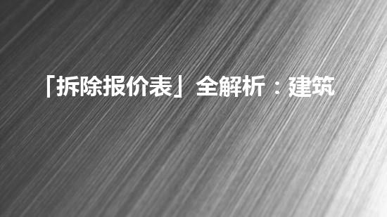 作为一个拆除行业专家,本文将全面解析「拆除报价表」,特别是针对建筑物拆除流程、费用、注意事项等方面进行详细阐述。对于那些正在准备拆除项目的建筑师、房地产开发商和业主,本文提供了必要的背景信息和有用的建议,以便他们在整个项目过程中做好准备和掌握相关知识点。