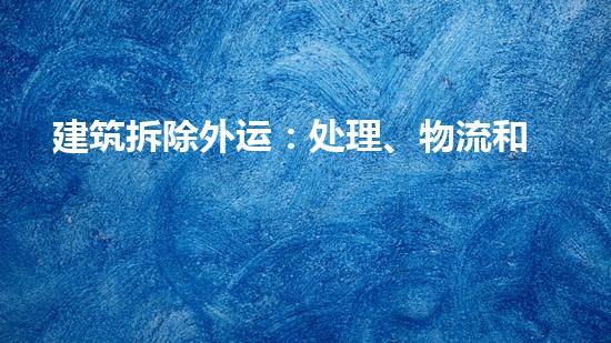建筑拆除外运:处理、物流和环保措施是拆除行业中极其重要的一环,它能够保证施工进程的顺利进行,降低噪音和灰尘的扰动以及有效解决建筑垃圾对环境造成的影响。本文将从多个角度,详细分析建筑拆除外运中处理、物流和环保措施的重要性及其应用情况,并提出建议和思路。