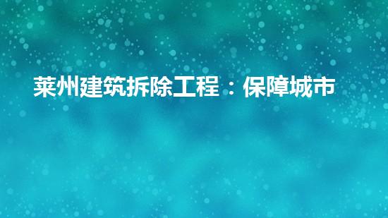 莱州建筑拆除工程是为了保障城市安全,实现环保发展而展开的一项重要工程。在这个工程中,安全、环保和科技是重要的方面,施工团队必须对这些问题进行认真的分析和预防。