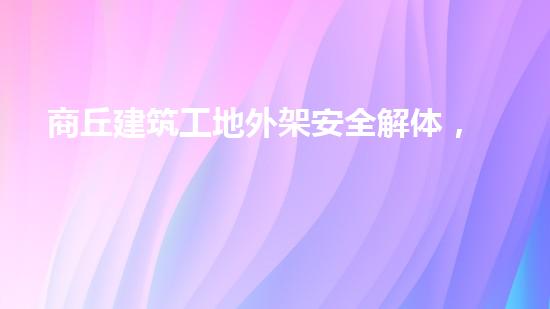 商丘建筑工地外架的安全解体是一个需要高度关注的问题,必须遵守相关法规和标准,并建立详细的安全计划和技术方案。同时还需要对相关人员进行充分的培训和配备。在施工过程中还必须考虑环境保护和危险废物处理问题。因此,对商丘建筑工地外架的安全解体进行细致的规划和实施至关重要。