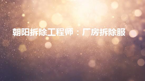 朝阳拆除工程师:厂房拆除服务电话汇总!是一个提供专业化的拆除工程服务的机构,它为各类企业、机构、个人提供全面、高效、安全的拆除服务。本文从工程技术、设备回收、环保施工、危废处理、应用案例等方面,对朝阳拆除工程师所提供的服务进行深入剖析和介绍。