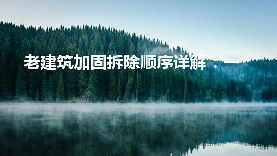 老建筑加固拆除顺序是一个需要专业知识和技能的领域。本文就老建筑加固拆除顺序作出详解,着重介绍专家在拆除行业中的重要角色,以及在拆除过程中要注意的4个方面。最后,本文还总结出了文章的主要观点和结论,以便读者清晰准确地了解老建筑加固拆除的重要性和专业技术要求。