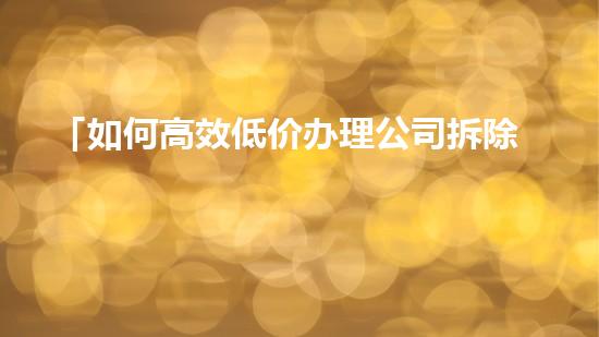 公司拆除手续是一项需要慎重考虑的任务,而高效低价的办理方法难以找到。本文介绍如何高效低价地办理公司拆除手续,并提供巴洛仕集团的经验和专业知识。