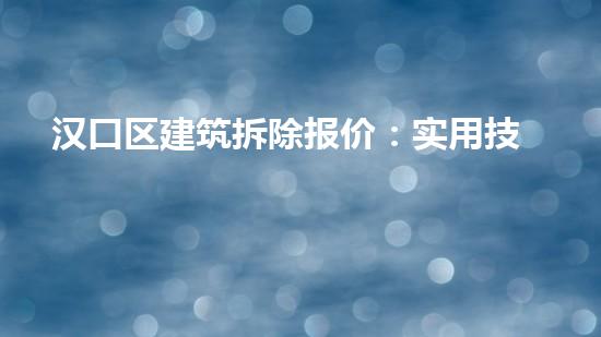 本文主要介绍了汉口区建筑拆除报价的实用技巧和市场调研分析。从拆除前的准备工作到后续处理中的环保施工等多个方面进行了详细的阐述。同时,本文还介绍了巴洛仕集团化工厂拆除案例,并探讨了不动火水刀切割拆除技术的应用。从专业技术角度分析,本文对拆除行业人员制定拆除报价提供了实用的技巧和方向。