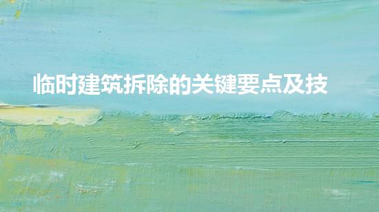 临时建筑的拆除是一个复杂而危险的过程,必须密切关注拆除的技术要求,并严格遵守环保要求。本文从拆除前的准备、设备拆卸、废物处理以及环保施工多个方面详细阐述了临时建筑拆除的关键技术要点。应该更加重视这一工作,不断提升拆除工作的质量和效率,减少环境污染。在今后的工作中,我们可以进一步研究拆除的新技术,以更好地应对未来的拆除工作。