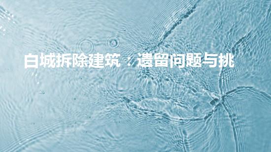 拆除建筑是一项复杂的任务,需要充分考虑各方面因素。在清洗置换、设备回收、污泥减量化、废液处理、油罐拆除、危废处理、环保施工等方面,需要采取合理有效的措施,以确保拆除过程中的安全和环保。同时,巴洛仕集团化工厂拆除案例和应用水刀切割技术的解决方案可以为其他拆除建筑提供借鉴和参考。可以通过加强对专业技术的研究和规范化管理,高效解决拆除建筑的遗留问题和挑战。