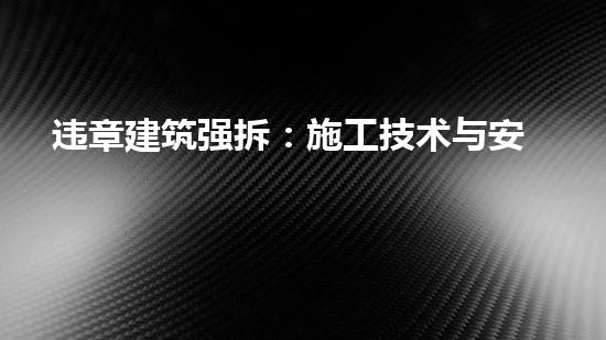 本文将介绍违章建筑强拆的施工技术与安全注意事项。首先,我们将引出读者的兴趣,并提供背景信息。然后,我们将从拆除工程前的规划、安全保障、拆除方式、施工环境管理、拆迁后的污染治理等方面,详细阐述违章建筑强拆的施工技术与安全注意事项。最后,我们将总结文章的主要观点和结论,并提出建议及未来的研究方向。