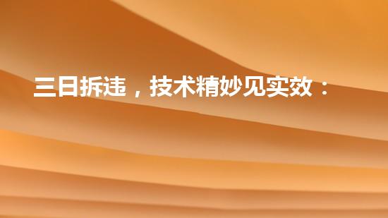 以上就是我们在“三日拆违,技术精妙见实效:化工专家为您解读厂房拆除奇招”这一主题下所阐述的内容。在工作中,我们需要根据工作对象和作业场景的不同,采用不同的拆除技术。同时,在拆除过程中也需要进行环保技术的应用,减少污染,为我们的环境保护做出贡献。