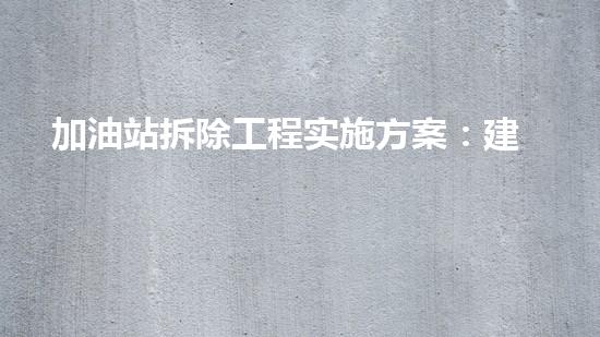 加油站拆除工程实施方案:建筑面积优化解决方案是一种先进的建筑拆除技术,在可行性、环境保护、设备回收、人员安全等方面具有优势。在实施该方案时,加强环保意识,充分利用现有资源,合理处理废品废物,为城市环境注入新的活力。各相关部门和企业应加强合作,共同推进该方案的实施,为城市的发展和建设做出贡献。未来研究方向,将进一步探索新的拆除技术和模式,推动城市建设向更加可持续的方向发展。