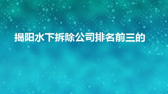 揭阳水下拆除公司排名前三的公司在技术水平、拆除设备、安全措施和专业团队等方面具有显著优势,这些优势让该公司在市场上表现得非常出色。同时,该公司也在不断努力提高自身的服务专业度和施工效率,以适应国家和客户对于水下拆除市场要求不断提高的现实需求。