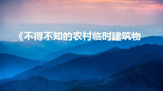 农村临时建筑物是指在农村地区用于临时居住、工作、储存物品等的建筑物。按建筑物的功能和用途,可分为居住型、生产型、储存型等不同类型。