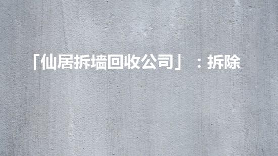 建筑垃圾排放已成为严重的环境污染问题。在这样的背景下,仙居拆墙回收公司应运而生,致力于建筑垃圾资源化利用。本文主要介绍仙居拆墙回收公司的拆除假墙、回收旧材料、环保节能等方面的专业技术角度深入分析,以及对建筑垃圾资源化利用的见解。