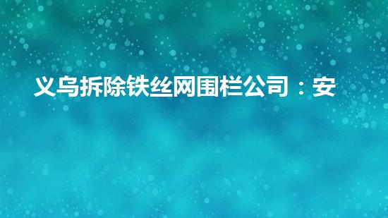 义乌拆除铁丝网围栏公司是一家专业的拆除公司,致力于提供安全、快速、专业的拆除服务。本文将从以下四个方面对该公司的安全、快速、专业性进行详细阐述:技术实力、安全管控、施工效率和环保措施。