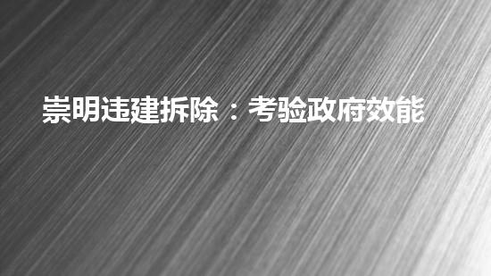 崇明违建拆除是政府维护国家法律法规,腾出土地用于建设的重要行动。政府要加强监管力度,坚决制止违法违规行为。此外,政府要落实好拆迁政策,对失地农民和受影响居民进行合理安置并给与适当的补偿。这不仅是促进城市化进程的需要,也是保障人民权益的要求。