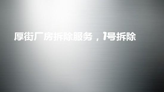 厚街,是一个位于东莞市的工业城镇,该地出产许多著名的品牌。厚街在工业化进程中,节约土地建设大型厂房,但一些旧厂房因使用年限到期或不再适用而需要进行拆除。在这样的背景下,拆除行业尤为重要。而1号拆除公司,作为本地区最著名的拆除公司之一,其电话回拨服务更是让此公司领军本地拆除行业的重要因素之一。