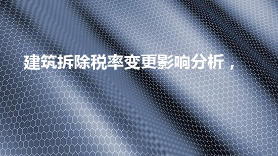 综上所述,税率变更对建筑拆除行业带来的影响和变化是非常显著的,涉及到许多领域,如专业化、技术性、市场竞争力、环保要求、成本管理和政策影响等等。为了应对这些变化和挑战,该领域的从业人员和企业需要加强技术和管理专业化,抓住机遇,提高市场竞争力,降低成本管理和加强政策法规遵守。这些措施可以帮助企业更好地适应税率变化带来的挑战,保证持续的发展和创新力。