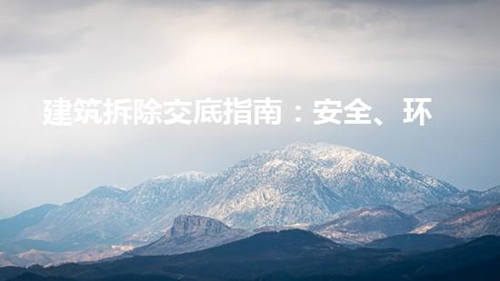 建筑拆除交底是一项重要的工作,它涉及安全、环保和效率等方面。本文将从化工厂拆除案例入手,介绍建筑拆除交底指南。我们将深入探讨建筑拆除过程中需要注意的各种问题,为读者提供专业的知识和技巧。