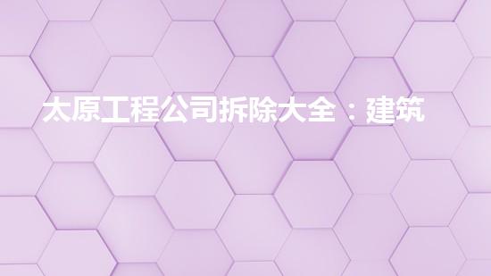 太原工程公司拆除大全是一家提供全方位拆除服务的公司,包括建筑、设备、桥梁、隧道等领域。通过本文,我们将会为读者介绍太原工程公司所提供的服务,并深入研究其专业知识,以及所使用的技术和方法。我们还会通过案例研究来展示太原工程公司如何在拆除领域领先于其他企业。本文旨在吸引读者的关注并提供必要的背景信息。
