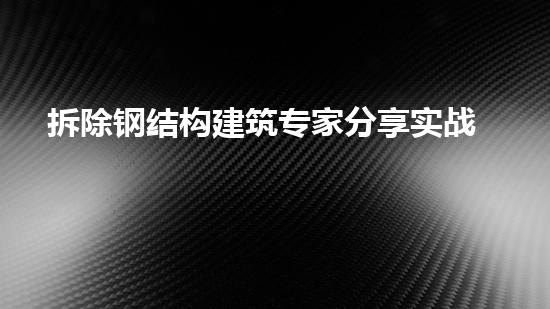 拆除钢结构建筑是一项非常危险的工作,需要专家来指导和操作。本文就是由一名拆除钢结构建筑专家分享实战技巧,为读者提供一些实用的建议和规范,以确保拆除工作的安全和有效。