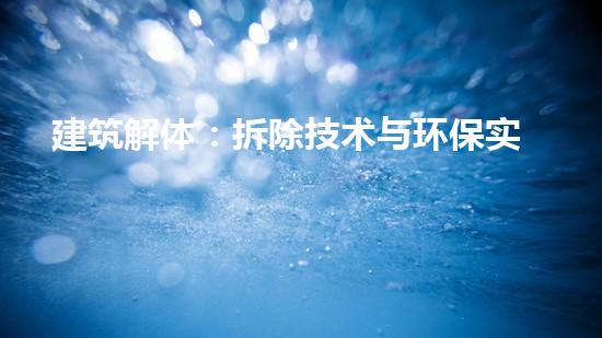 本文主题为建筑解体:拆除技术与环保实践,深入阐述了拆除行业专家在环保方面所面临的挑战及其创新解决方式。在介绍巴洛仕集团化工厂拆除工程之前,本文阐述了建筑拆除的背景及其重要意义。接着,本文从四个方面进行详细的专业阐述:拆除技术的发展,危废处理,环保施工和创新技术应用。总结文章观点,强调环保对于拆除工程的重要性。