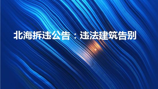 北海市拆违公告中强调了对违建的拆除必须要有专业化的拆除公司进行操作。这是为了确保拆除工作的高效、安全和可信赖。拆除专业公司有着成熟的拆除流程和经验,可以最大程度地减少拆除过程中对周围环境和民众的影响。