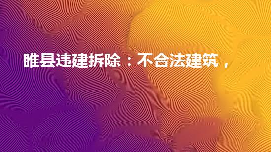 睢县违建拆除是一个涉及到城市管理、房地产开发、环境保护等多个领域的综合性问题。如何高效地拆除违法建筑、处理废弃物料、促进城市可持续发展,是摆在我们面前的重要课题。本文将围绕睢县违建拆除展开深入剖析,从几个方面分析解决方案,旨在为读者提供专业的指导和参考。