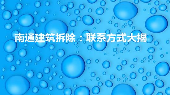 南通建筑拆除是当前社会中不可避免的一个环节,在这个过程中,联系方式的重要性显得尤为重要。本文将围绕南通建筑拆除:联系方式大揭秘进行深入阐述,从拆除机构、联系方式、施工技术等方面进行详细阐述,诠释拆除工作中的重要性和难点。