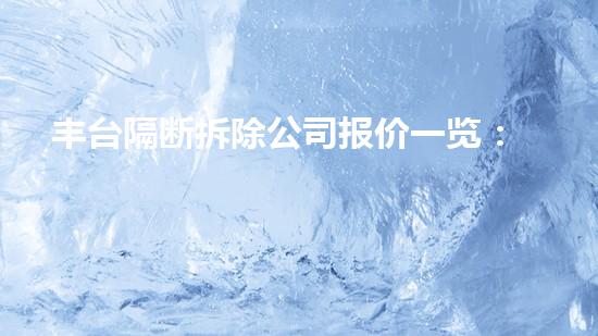 本文介绍了丰台隔断拆除公司的报价一览,旨在为客户提供方便,快速了解价格及服务策略,也为消除客户的顾虑提供背景信息。隔断拆除是一项很重要、技术性很高的工程,需要专业人士进行操作和维护,而丰台隔断拆除公司作为一家专业从事隔断拆除的公司,其报价和服务更值得信赖。