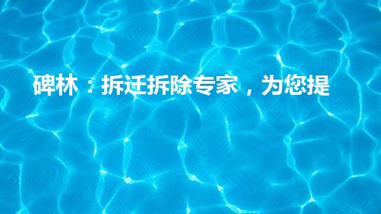 碑林:拆迁拆除专家的专业团队均拥有多年的实战经验和较高的专业素质。他们能够根据项目的特点和要求,为客户提供可靠的拆除方案和一流的工程质量。