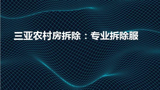 随着城市化的发展,越来越多的人涌入城市,导致城市中有大量的空置房屋,与此同时,各地的农村地区面临建设不足的问题,焕发出它们的原始魅力和生机。在这个过程中,需要对农村中的老房子进行改造和拆除,以便更好地利用土地资源进行建设。本文将详细介绍三亚农村房拆除:专业拆除服务,解决乡村建设问题,旨在引起读者的兴趣,传递出背景信息。