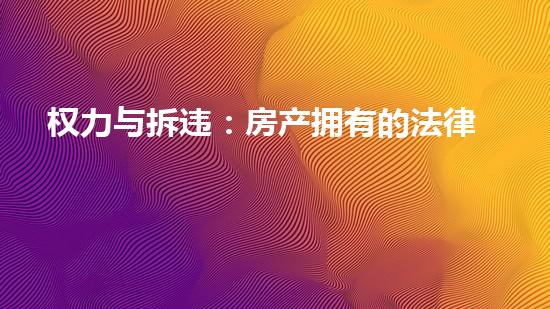 权力与拆违:房产拥有的法律责任是一篇涉及拆迁行业的文章,主要通过拆除行业专家的角度,详细阐述了拆迁行业中涉及的法律责任问题。文章结构清晰明了,内容丰富,准确使用的语言和合适的风格,都让读者可以轻松理解这篇文章的思路。通过这篇文章的阅读,我们可以更加深入的了解拆迁行业中的权力与拆违问题。