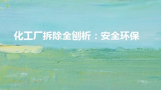 化工厂拆除全刨析:安全环保的根本步骤在当今工业升级和环保要求严格的背景下,化工厂拆除已成为一个备受关注的话题。伴随视频平台的普及,越来越多的化工厂拆除视频在网络上流传,这些视...