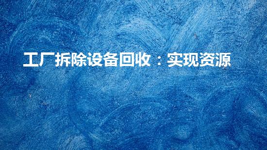 工厂拆除设备回收:实现资源循环与环境保护的双赢策略